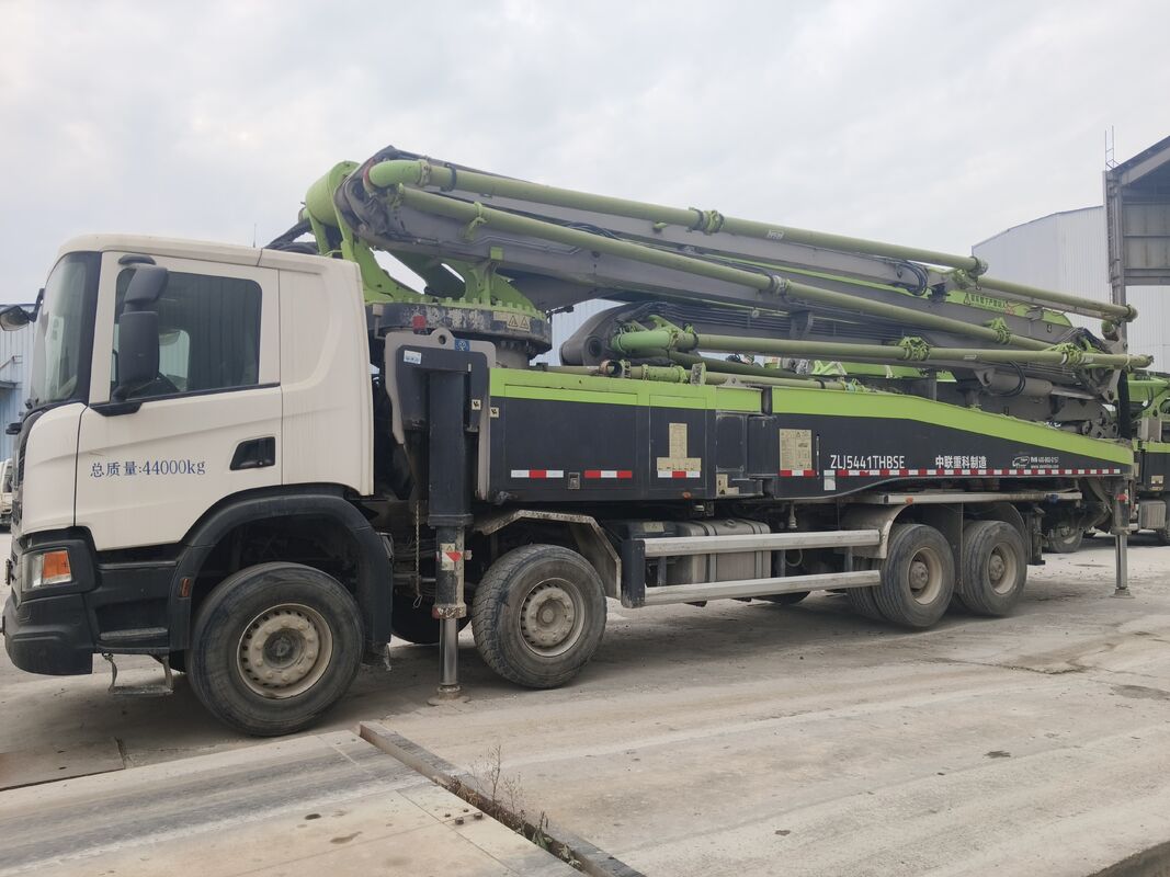 Spezifikationen: 56-Meter-Ausleger, Scania-Chassis, 90.000+ Kubikmeter gepumpt, China Stage V-konform, 18.000 km Laufleistung.