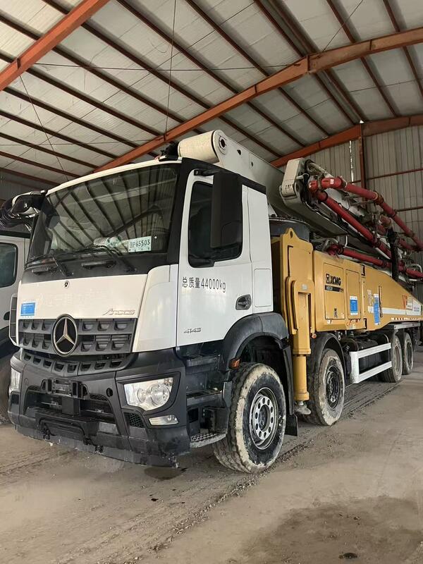 This 2021 pre-owned XCMG Schwing 62m concrete pump with Mercedes chassis features mature configuration and moderate working hours, with procurement delivery standard, ideal for large-scale construction concrete conveying tasks.